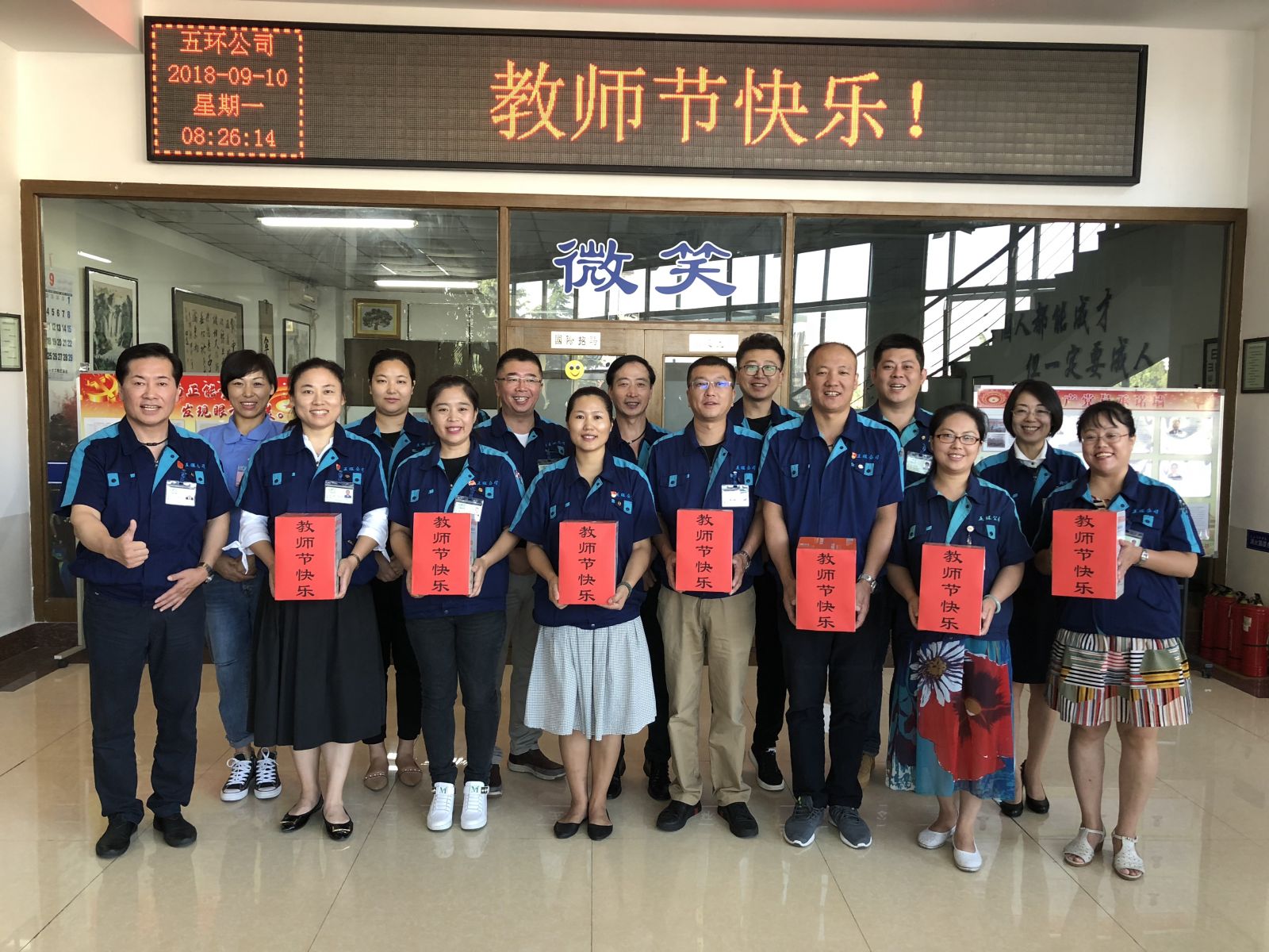 實習生袁俊秀為公司贈送錦旗 “感恩于五環,家一般溫暖”